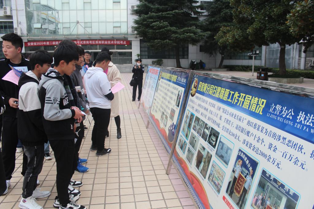 为扎实推进我校“扫黑除恶”专项斗争深入开展,进一步增强师生的防骗意识,保障师生财产安全,11月5日,学校保卫部与淮南市田家庵区公安分局和洞山派出所联合开展扫黑除恶、防网络电信诈骗专项宣传活动。