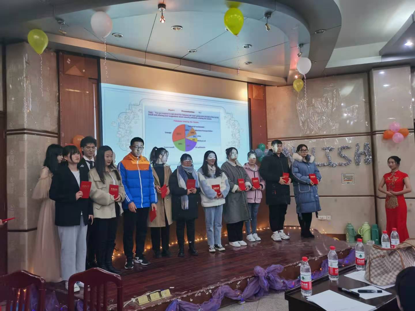 为提高当代大学生的英语口语水平,增强全校学生英语学习氛围,由人文教育学院主办、英语协会承办的大学生英语口语大赛复赛于2020年11月30日下午4点半在3305教室成功举行。出席本次比赛的嘉宾有我校副校长凌总成、人文教育学院院长李文权、副院长张蕊,担任本次大赛的评委由五名英语老师组成,并有百余名学生观看了本次精彩的口语大赛。
