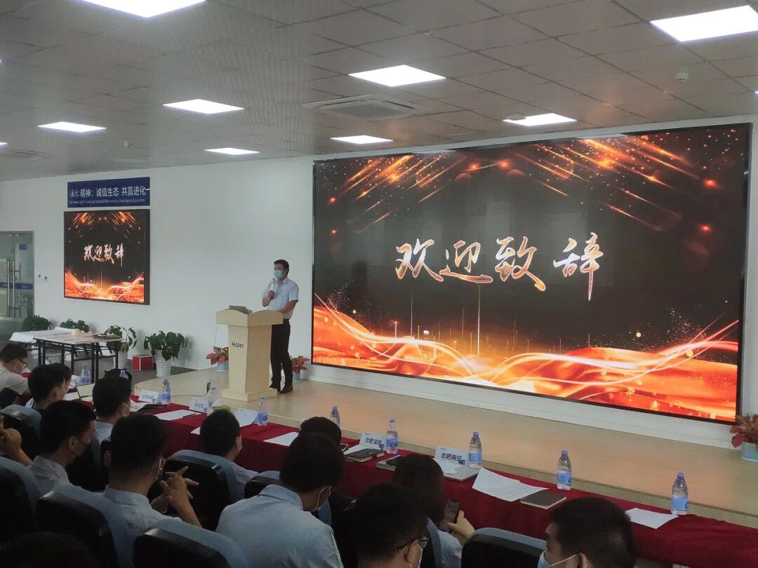 会上,园区招聘人力资源经理尚元浩对班组长育成班学员的到来表示热烈欢迎,对他们今后在海尔的发展提出殷切希望和建议。随后,华东园区培训发展接口人姜萍经理向学员们介绍了华东海尔及“淮”“海”之约的合作历程。现任职合肥滚筒洗衣机线长岗位的2017届缪徐勇学长分享了他在海尔近3年的“破茧成蝶”的学习工作及发展经历。海尔六家互联工厂的推介官详细介绍了各自工厂的优势和发展建议,经过激烈抢单,48名学员全部顺利抢入到意向工厂。最后,启动会在全体学员的海尔创客宣言中落下帷幕。