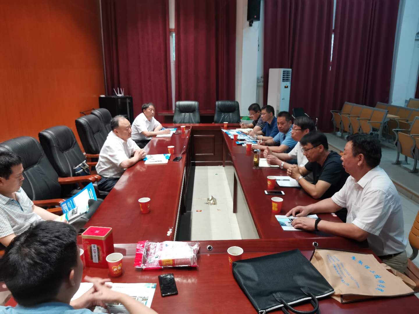 6月22日下午,技师学院院长王德恩一行赴毛集试验区调研交流,并就下一步如何开展校地合作、教育扶贫等进行商谈。毛集试验区工委委员、副区长陶应友亲切会见了王德恩一行。
