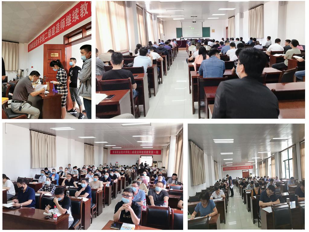 我校严格按照安徽省住房和建设执业资格注册中心发布的《2020年安徽省住建执业资格人员继续教育培训须知》组织了首场二级建造师继续教育报名、培训、考核工作,特邀知名企业的高工、专家(硕导)和高校具有高级职称的教师来校讲课,重点讲解了建筑工程新技术、BIM技术应用、装配式建筑技术、绿色建筑技术等。