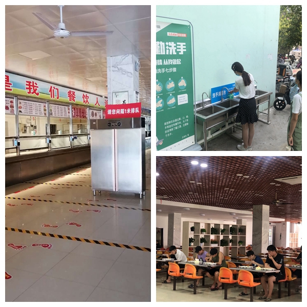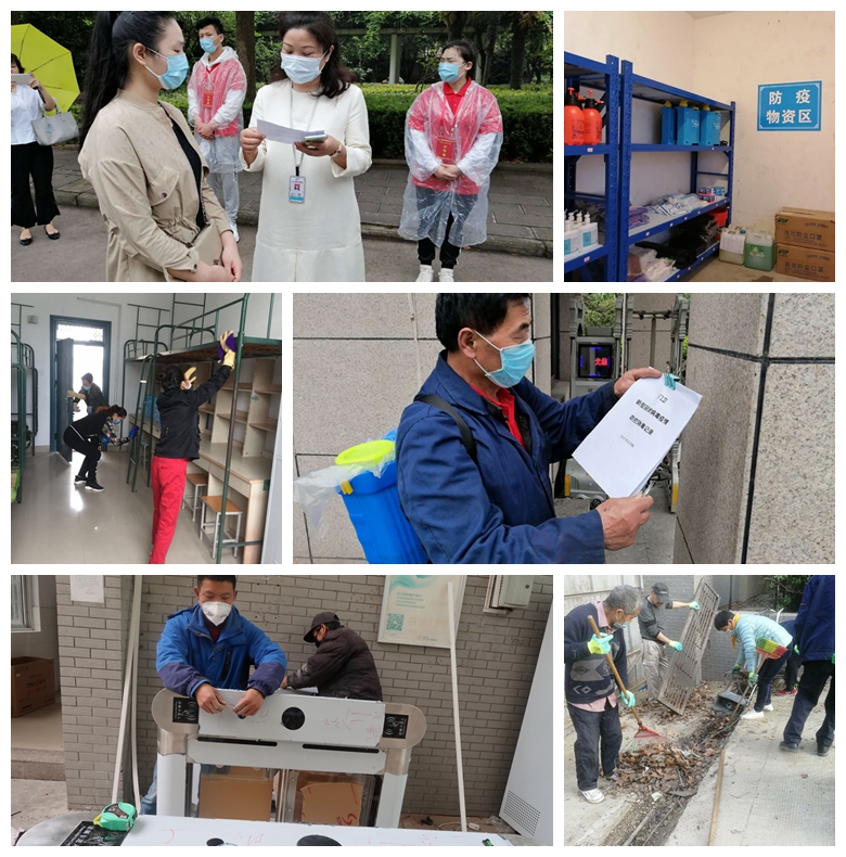 悉心准备 疫情防控期间总务处对公共场所每天进行消毒并登记、清理了校园下水道垃圾、建设施工人脸识别热成像系统基础设施、储备充足的防疫物资;在开学前对每一间学生宿舍进行了擦拭消毒、清洁打扫,对学生食堂也进行了消毒,划好1米线,并特邀疾控中心专家对疫情防控工作进行了指导,查缺补漏。