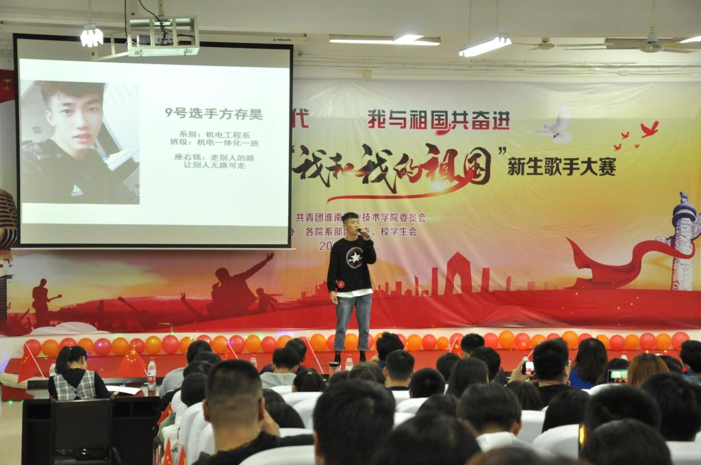 此次比赛以“放歌美好新时代我与祖国共奋进”为主题,13位选手依次登台,以动人的歌声和精彩的表演,共同抒发爱国情怀,来自机电工程系的方存昊同学凭借其独具魅力的嗓音获得大赛一等奖。