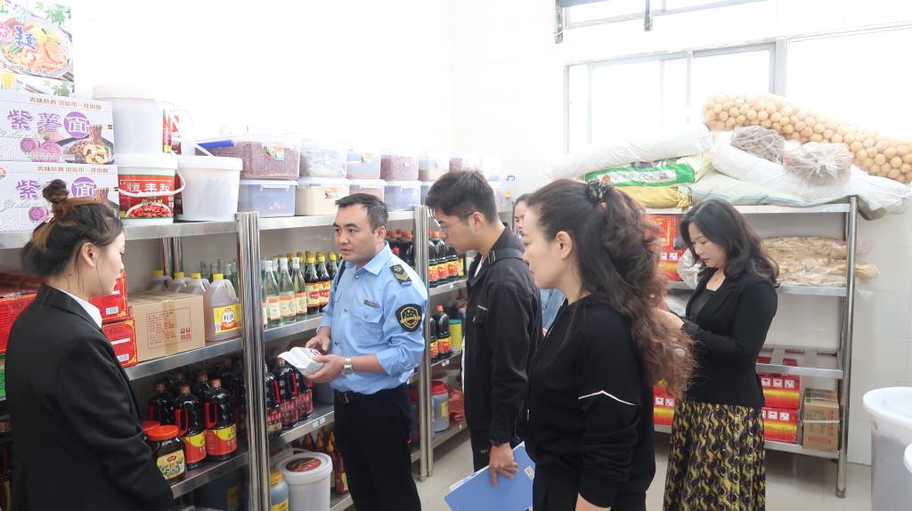 10月21日上午,淮南市田家庵区市场监督管理局舜耕市场监督管理所所长刘葆一行3人前来我校学生食堂就食品安全工作进行突击检查,后勤处处长万丽萍及相关人员陪同检查。