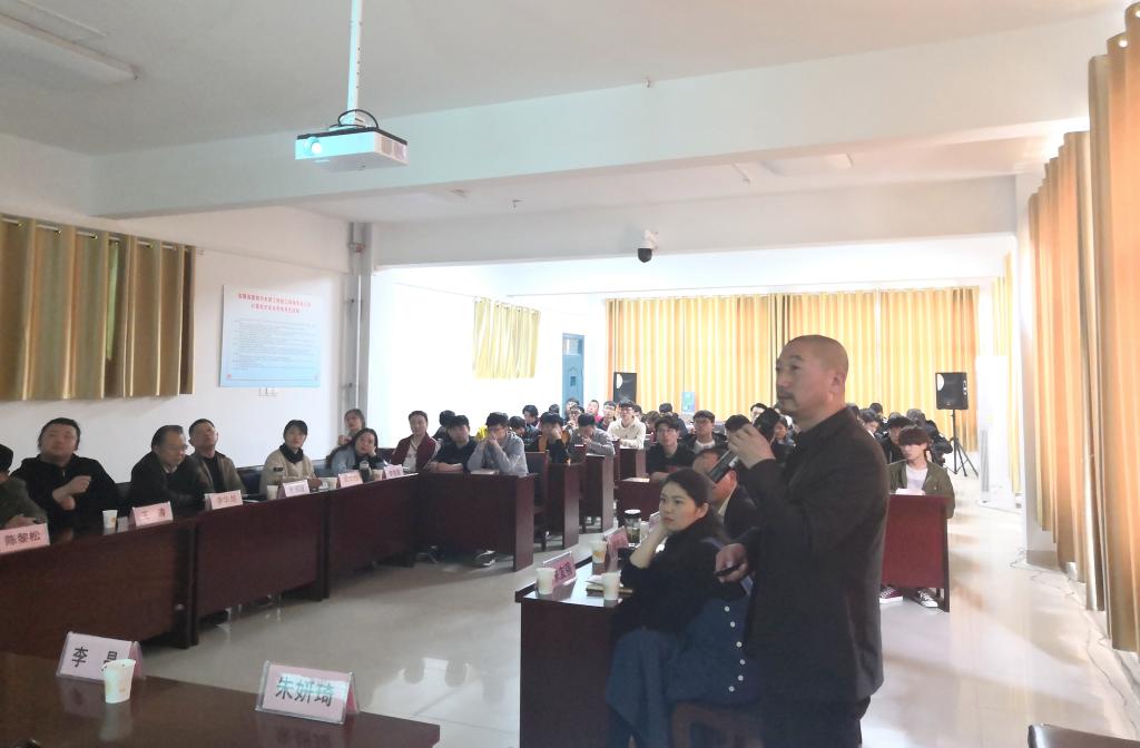 3月25日,国内著名雕塑家、春申雕塑研究院院长周茂盛,淮南市环境艺术协会会长陈黎松,执行会长李晶,副会长王涛和秘书长朱妍琦莅临我校,为工程管理系师生作了题为“装饰设计经典案例解析”的专题报告,建筑装饰专业师生共70余人参加报告会。