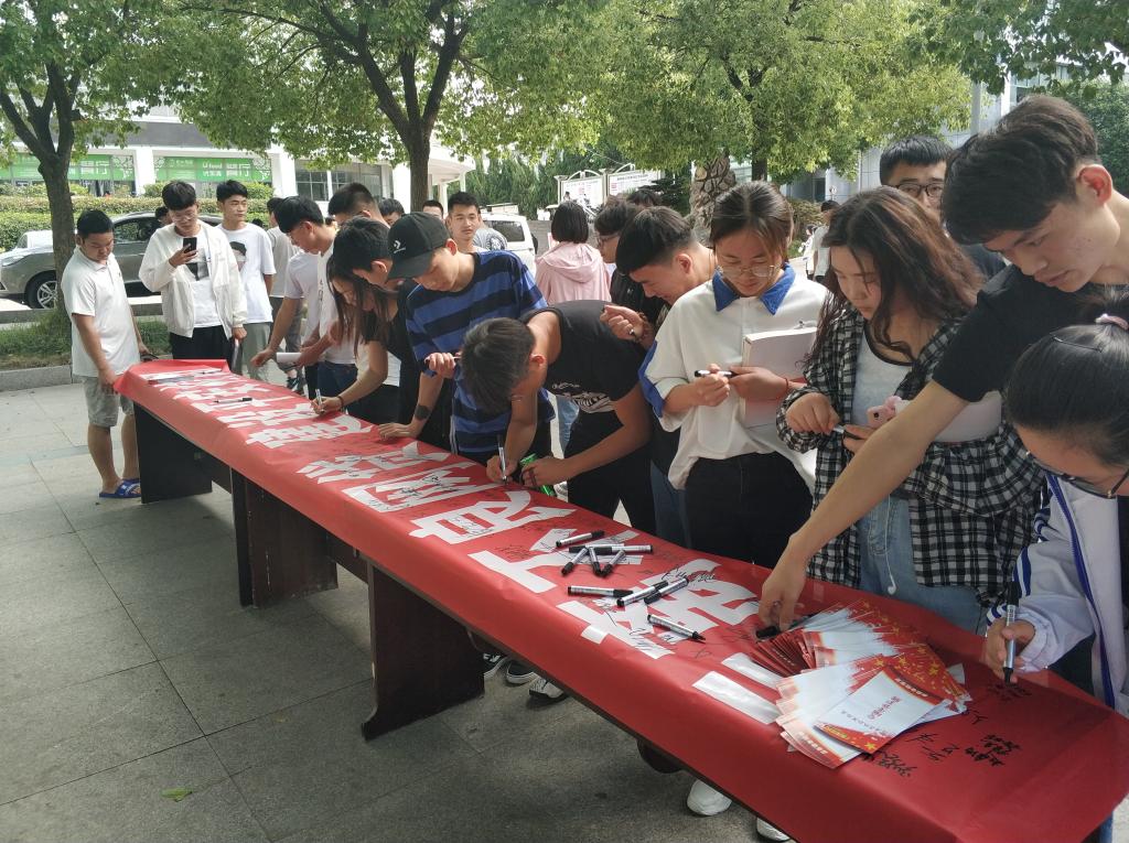 活动中,学生处工作人员向同学们发放《高校扫黑除恶专项斗争宣传手册》,宣传不良网贷防范知识。经过活动场地的同学们,纷纷在横幅上签下自己的名字,表示坚决抵制“校园贷”。