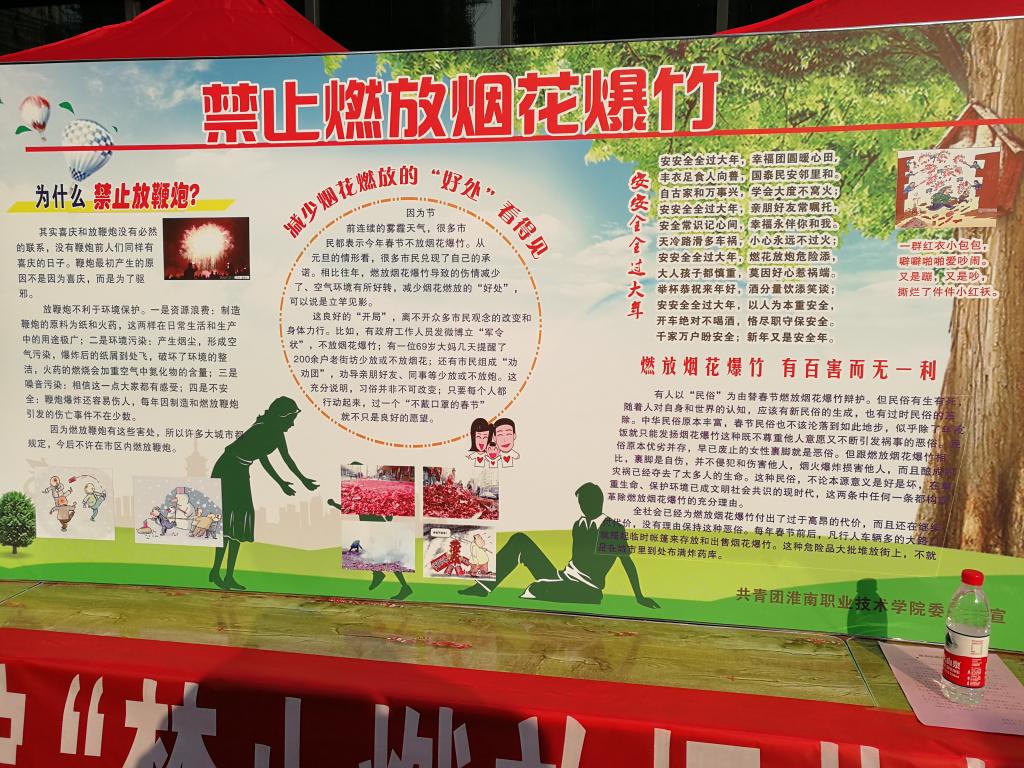 为宣传《淮南市燃放烟花爆炸管理规定》,提高市民环保安全意识,12月14日上午,我校组织志愿者来到金地环球港门前广场,参与开展“禁止燃放烟花爆竹”集中宣传日活动。