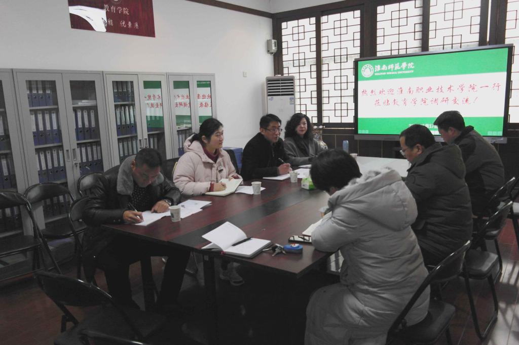 1月17日上午,人文教育系主任李文权一行就《幼儿发展与健康管理》专业建设到淮南师范学院教育学院进行调研,教育学院副书记、副院长廖军和进行了热情周到的接待。