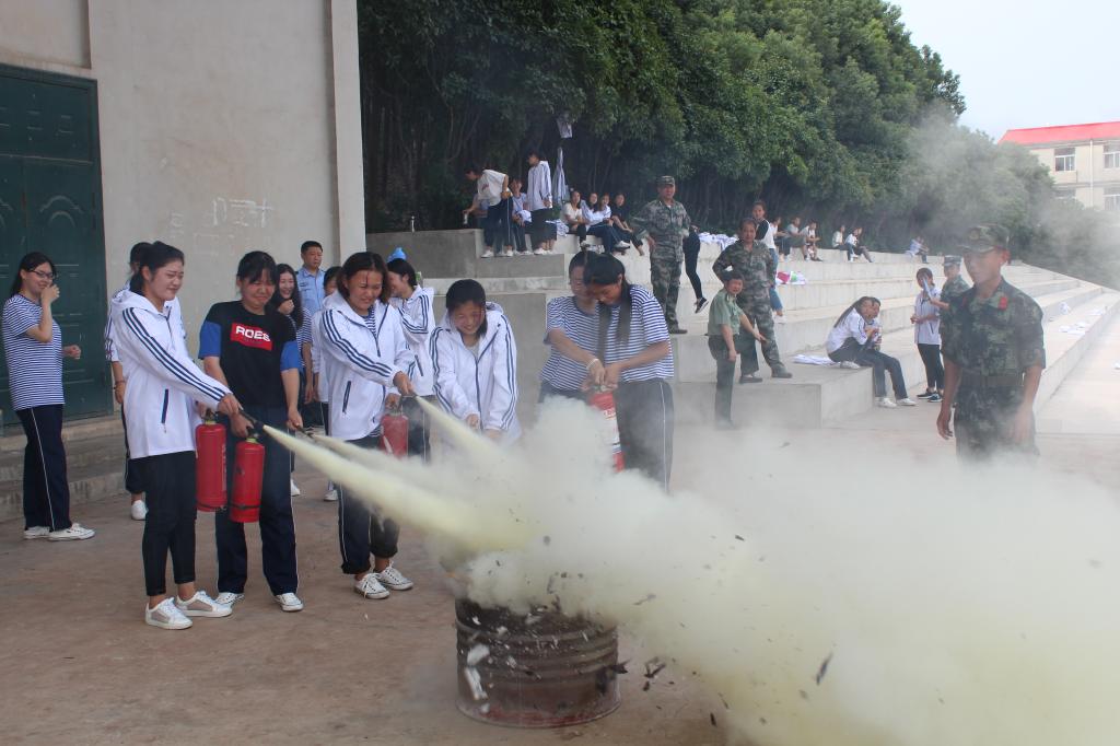 消防队员为同学们示范灭火器的正确使用方法,讲解火灾中逃生的注意事项,并组织同学们亲身体验。