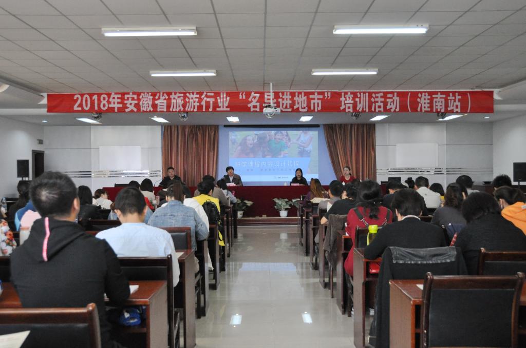 10月24日,由淮南市旅游局主办,经济管理系协办的安徽省旅游行业“名导进地市”培训班(淮南站)在我校研学交流中心举行。淮南市各旅行社导游、景区讲解员和我校旅游专业学生共计160余人参加了此次培训。