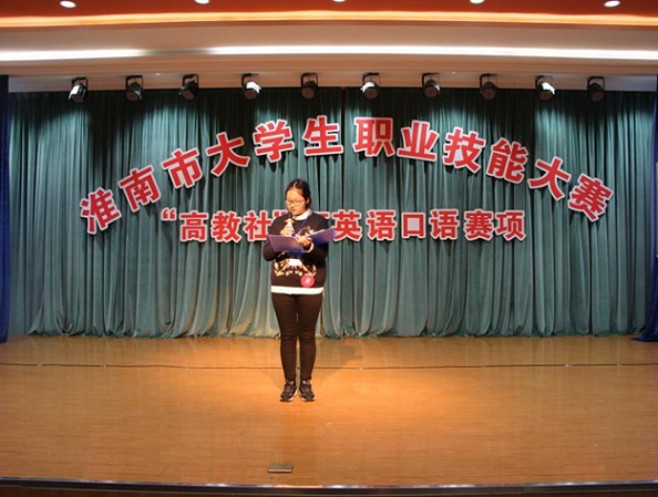 在此之前,2018年1月7日,在由淮南市人社局、淮南市教育局、淮南市总工会、淮南市团委、淮南市妇联、淮南市职教集团联合主办的,由淮南联合大学、淮南职业技术学院、安徽工贸职业技术学院、安徽现代信息工程职业学院共同参赛的2017淮南市大学生职业技能大赛“高教社”杯英语口语竞赛中,姚青云同学也以其流畅地道的口语表达和落落大方的台风,取得了淮南市第三名的好成绩。