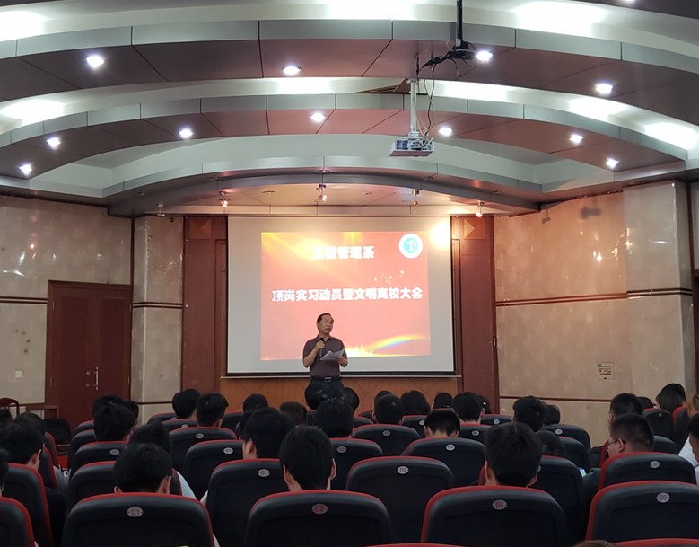 为切实做好2016级学生顶岗实习和文明离校工作,工程管理系于2018年05月23日下午在3305报告厅召开顶岗实习动员暨文明离校大会。参加会议的有系领导班子成员、2016级辅导员及全体学生。