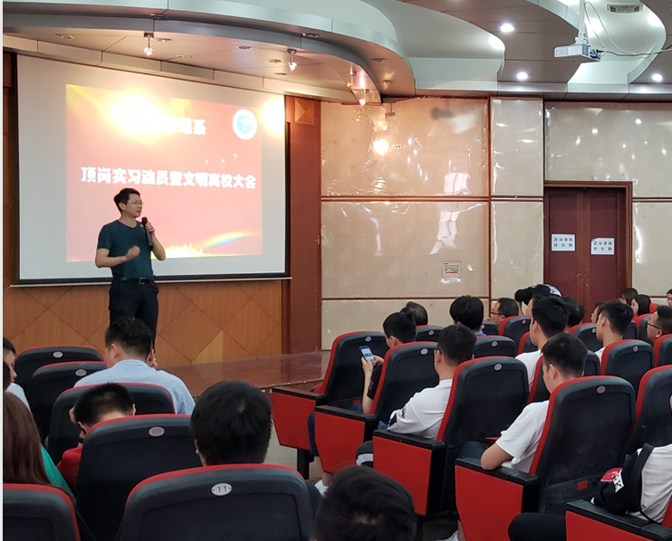最后,朱友强主任发表致辞。他要求学生要尊敬老师、心系学校,同时也提醒大家,在工作中要严格要求自己,不断提高自己的综合能力,在离校之后继续保持旺盛的学习热情、良好的精神风貌和拥有感恩母校之心;建议学生们在实习前多看一些人文方面的书,提前做好踏入社会的各项心理准备;并衷心祝愿学子们学习进步,前程似锦!