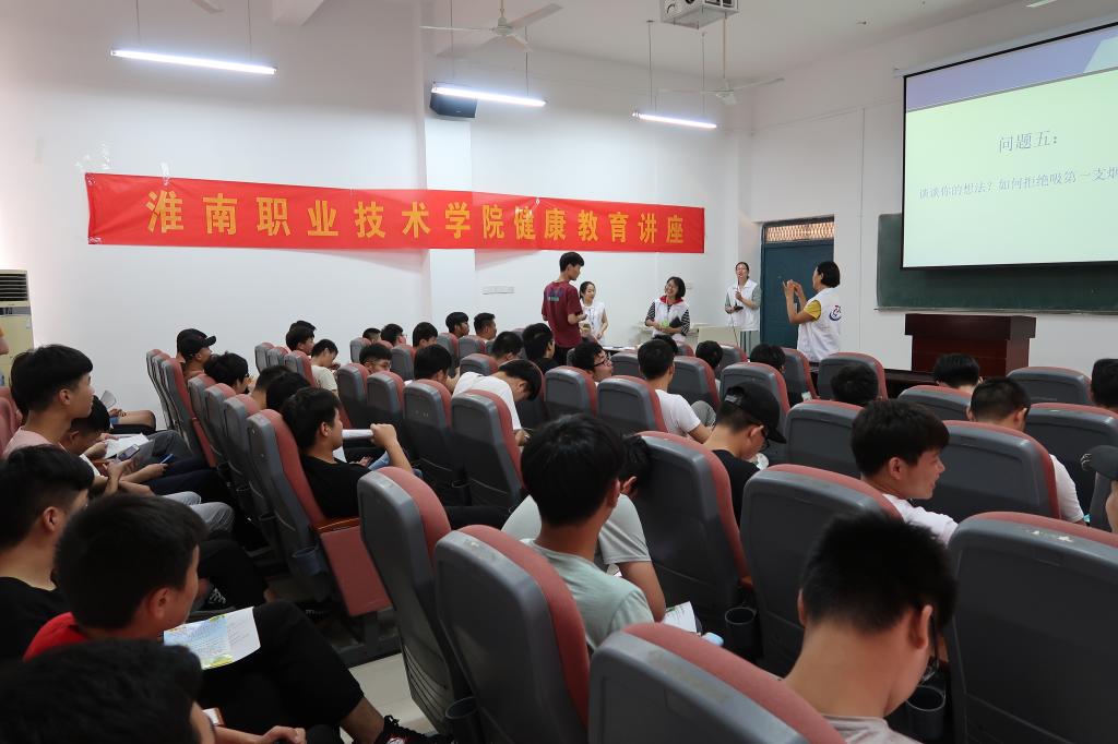 在第31个世界无烟日到来之际,为提高学生戒烟意识,后勤集团特邀田家庵区疾病预防控制中心进校宣传。5月31日下午,在1号教学楼113教室,举办了一场题为“拒吸第一支烟 不做吸烟新一代”的健康教育讲座。学院近60名学生、爱健康社团及后勤工作人员参加了讲座。