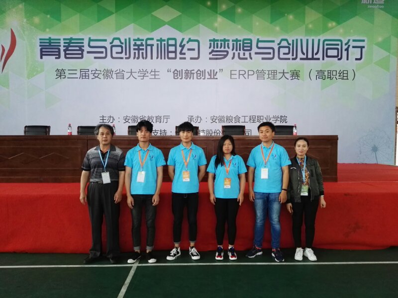 6月9日至10日,2018年安徽省大学生创新创业ERP管理大赛(高职组)在合肥市举办。我院经济管理系派出一支队伍参加比赛。