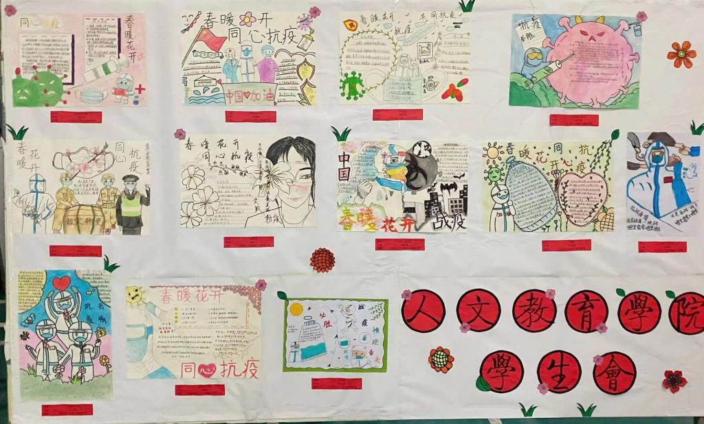 春光四月,疫情却突然发生,根据《淮南职业技术学院疫情防控期间线上教学实施方案》文件精神,我校于3月27日全面实施线上教学工作。在疫情防控期间人文教育学院学生会组织了“春暖花开,同心抗疫”主题手抄报征集活动。