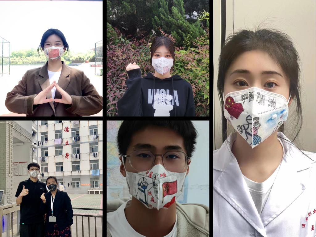 本次活动共收集参赛作品40余份,经评审组评选,择优选出6个作品,并在“淮职青年”微信公众号展示。参赛作品花样各式,各有创意,其中有鼓励同学们增强防疫意识的,有描绘春日景色的,有表达美好希望的,还有表达致敬抗疫一线英雄的......。同学们在实体口罩上通过水彩、简笔画、素描等方式进行创作设计,为单调的口罩添加一份独特色彩。