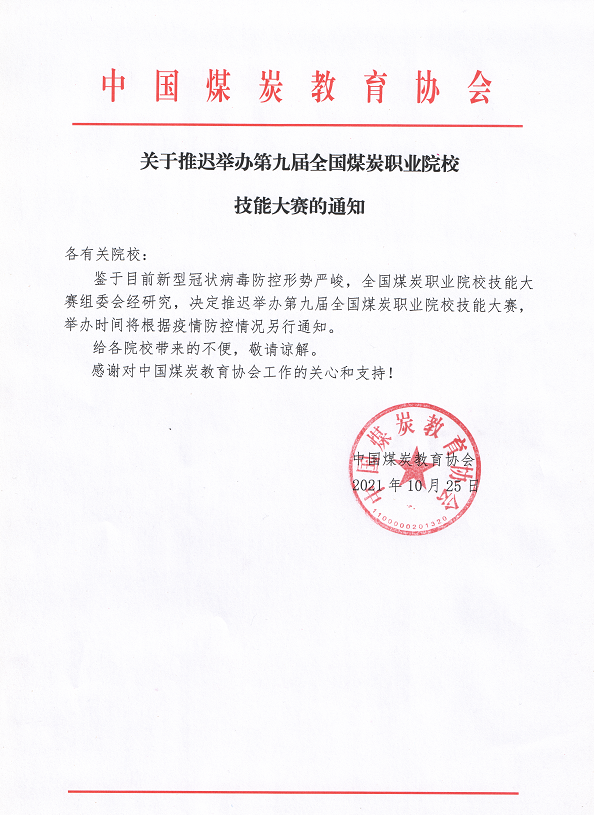 【行业大赛】关于推迟举办第九届全国煤炭职业院校技能大赛的通知