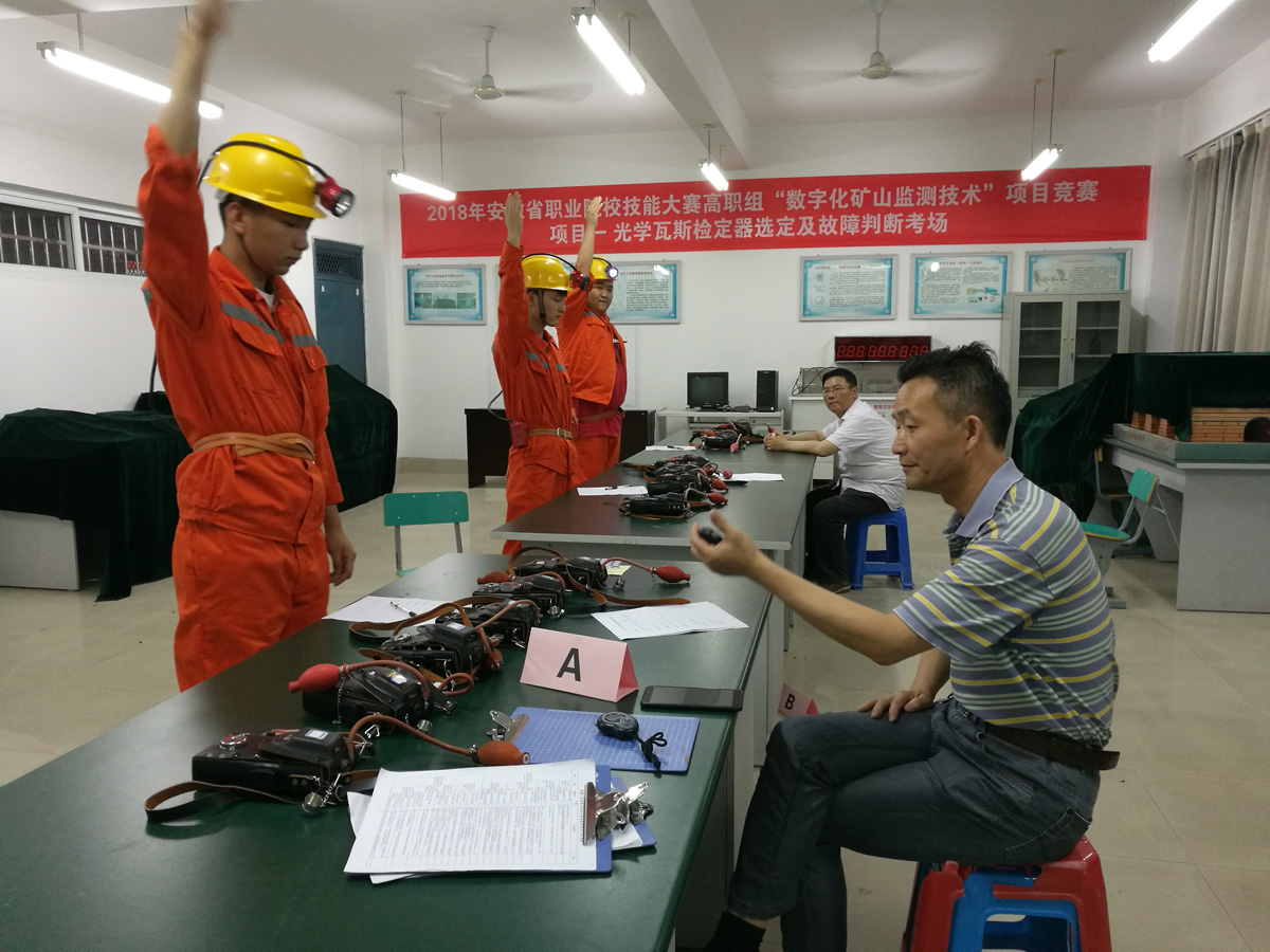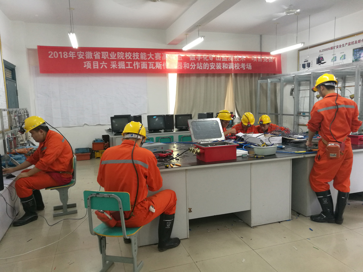 我校作为2018年全国职业院校技能大赛“数字化矿山监测技术”赛项安徽省集训单位,在淮南职业技术学院实训中心,与安徽矿业职业技术学院参赛队一起进行了为期5天的集中训练和比赛(6月11日至6月15日)。