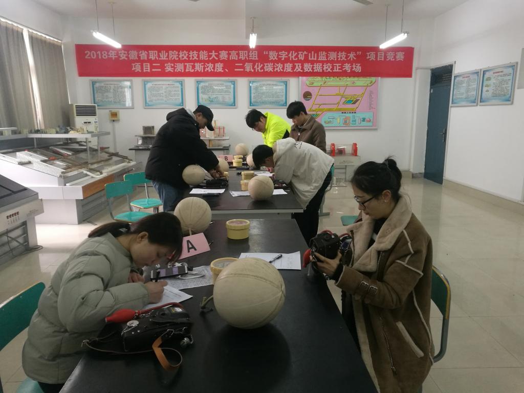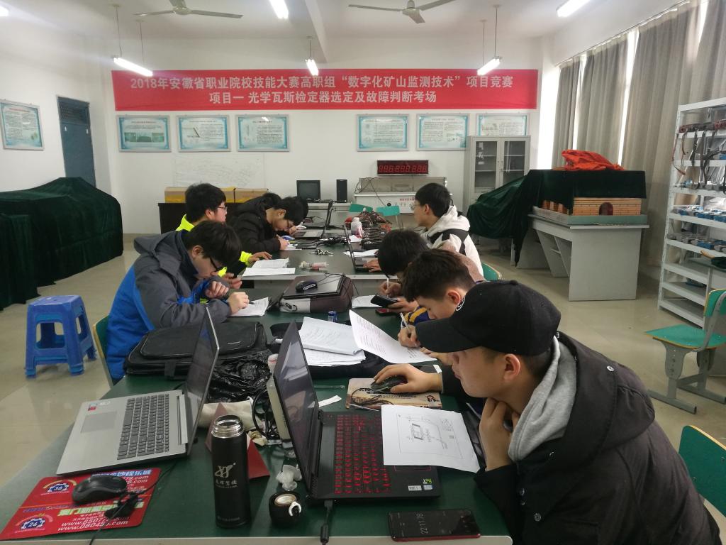 根据《安徽省教育厅关于印发2019年安徽省职业院校技能大赛(高职组)方案的通知》(皖教秘高〔2019〕5号),淮南职业技术学院承办2019年安徽省职业院校技能大赛“数字化矿山监测技术”赛项。该赛项比赛时间为2019年3月23日,目前合肥职业技术学院参赛队和淮南职业技术学院参赛队正在淮南职业技术学院进行紧张的赛前训练。