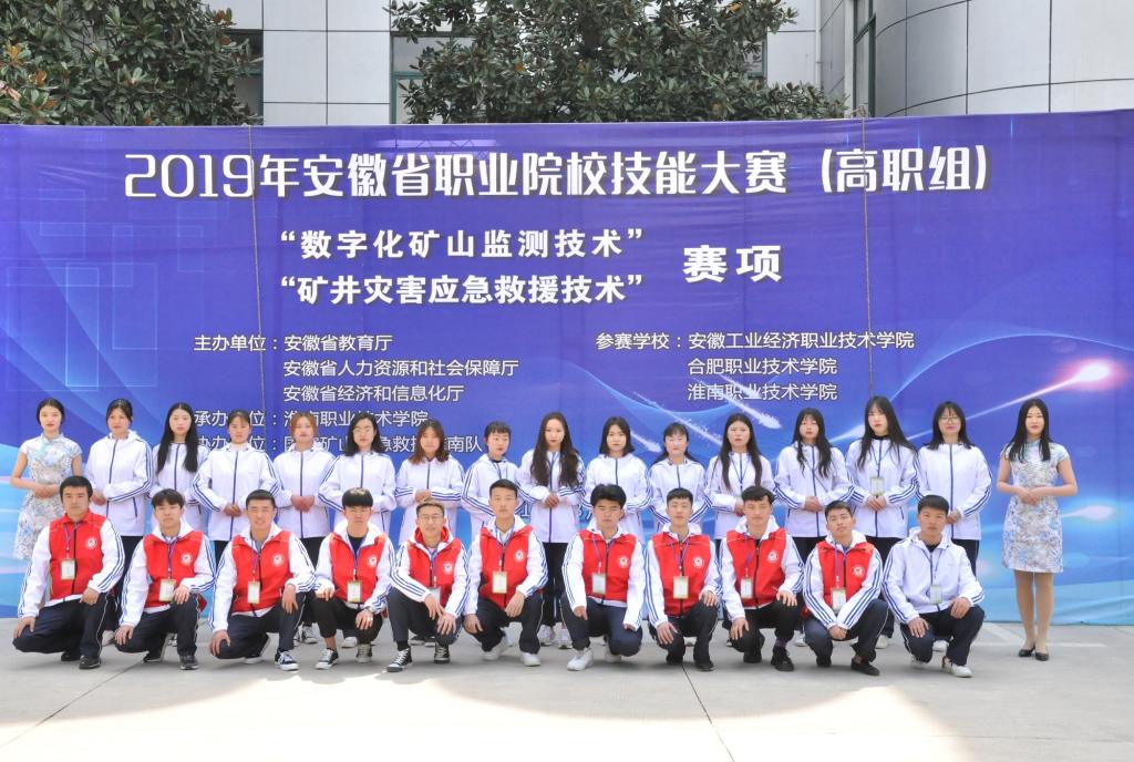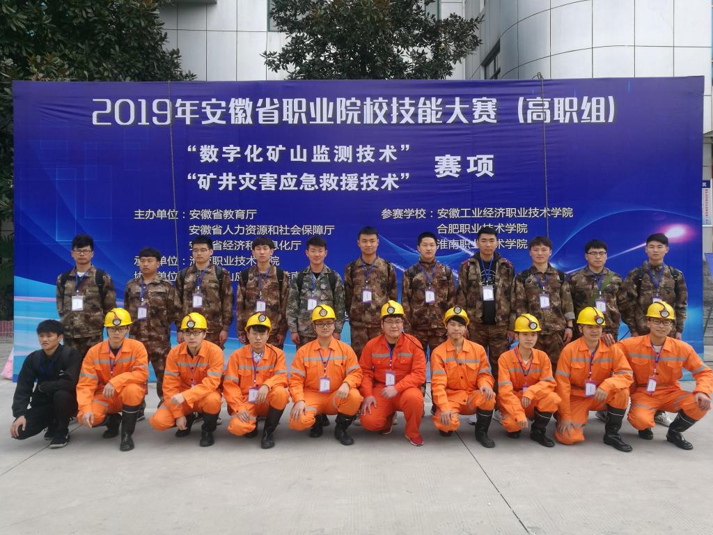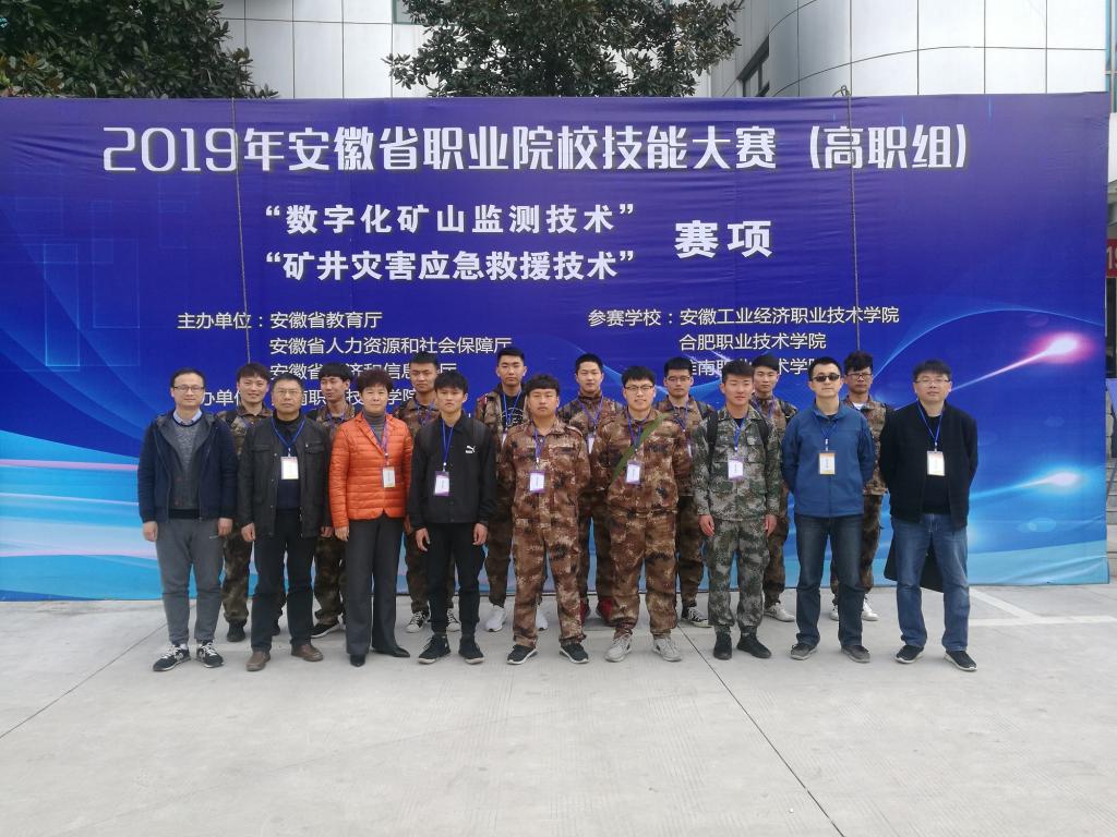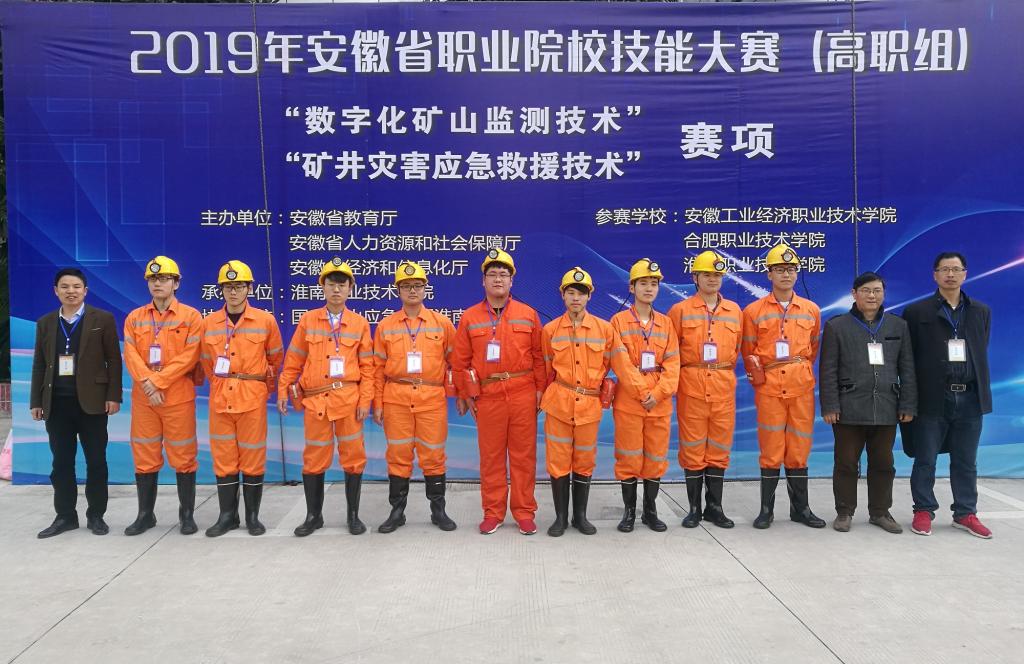 2019年3月23日,由安徽省教育厅 安徽省人力资源和社会保障厅 安徽省经济和信息化厅主办、淮南职业技术学院承办、国家矿山应急救援淮南队协办的2019安徽省职业院校技能大赛(高职组)“矿井灾害应急救援技术”和“数字化矿山监测技术”赛项分别在国家矿山应急救援淮南队基地和淮南职业技术学院中区成功举办。共有来自安徽工业经济职业技术学院、合肥职业技术学院、淮南职业技术学院的17支代表队的60名选手参加竞技。