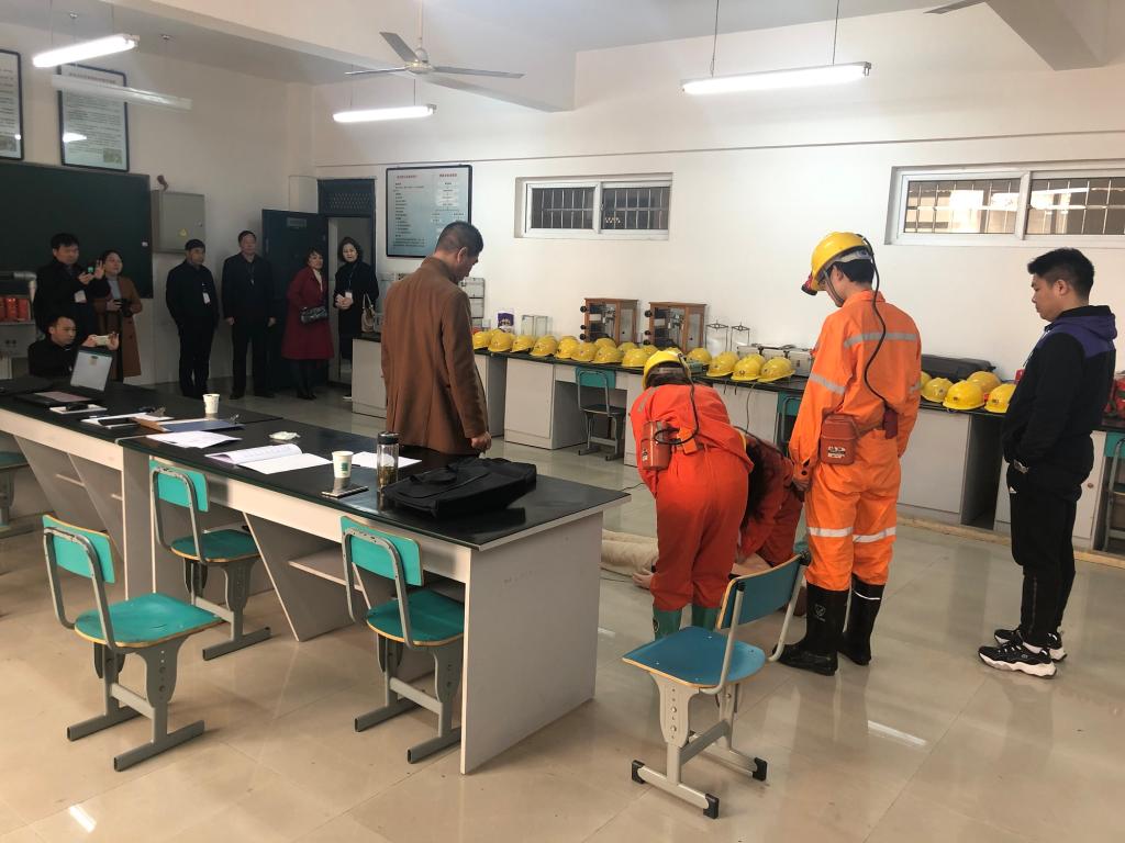 安徽省教育厅巡查员、安徽艺术职业学院教务处处长宋怡,淮南职业技术学院副校长朱云辉,国家矿山应急救援淮南队总工程师钱建兵、副大队长陈文兴到场指导工作。