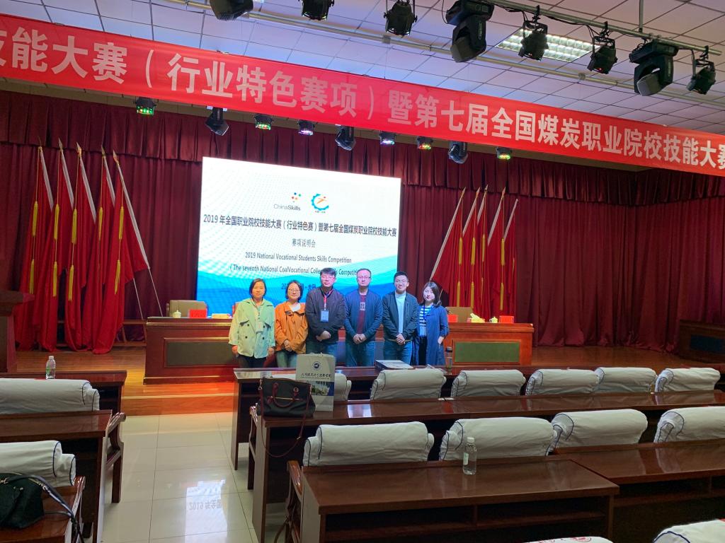 2019年5月6日,2019年全国职业院校技能大赛(行业特色赛)暨第七届全国煤炭职业院校技能大赛赛项说明会在山西大同召开。中国煤炭教育协会理事长李增全、中国煤炭教育协会副理事长兼秘书长王慧凌、中国煤炭教育协会秘书处处长郑蓓、赛项总裁判长王海清以及大赛专家组成员、赛事裁判员、参赛院校领队、指导老师等100余人出席会议。淮南职业技术学院能源工程系肖家平、杨波两位指导老师应邀参加会议。