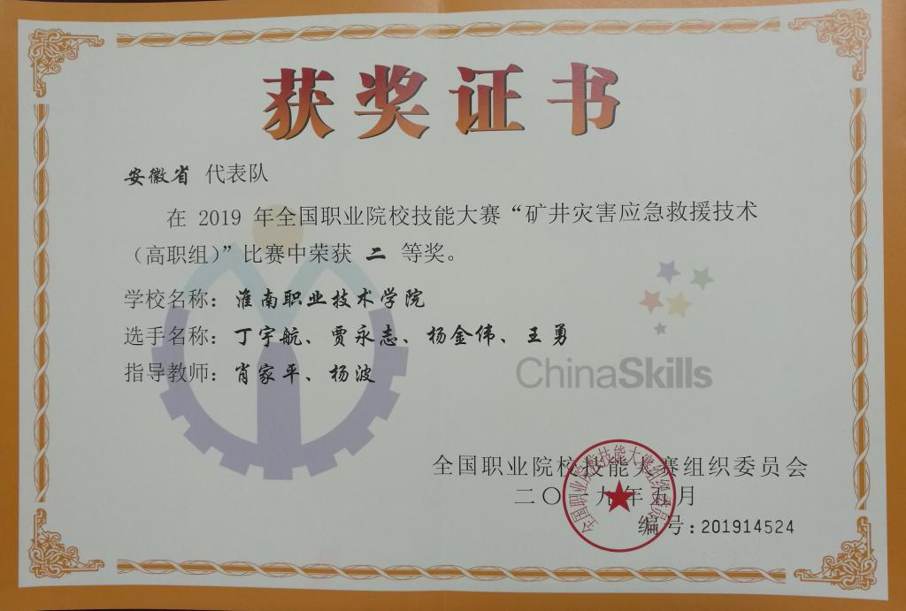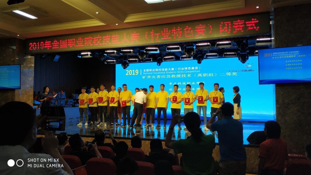 来自全国12个省、市、自治区的29所院校的116名选手参加现场角逐。各参赛队在赛场上比拼技能、展示风采、增进友谊,彰显了新时代职业技术人才的精神风貌。经过激烈的角逐,我校能源工程系四名学子勇夺2019年全国职业院校技能大赛(行业特色赛项)矿井灾害应急救援技术(高职组)赛项团体二等奖。