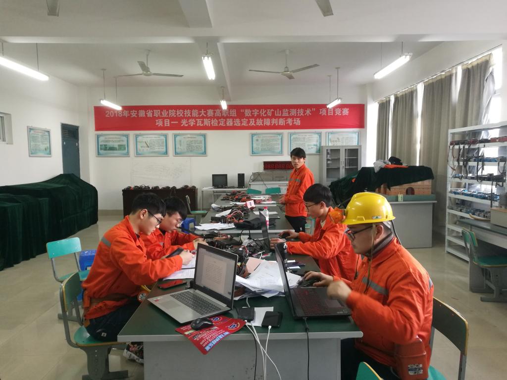 2019年安徽省职业院校技能大赛“数字化矿山监测技术”项目将于2019年3月23日在我校开赛。为检验集训效果,2019年3月14日,合肥职业技术学院和淮南职业技术学院五个参赛队进行了第二次模拟比赛,相比第一次模拟比赛,各参赛队的成绩都有了明显提升。