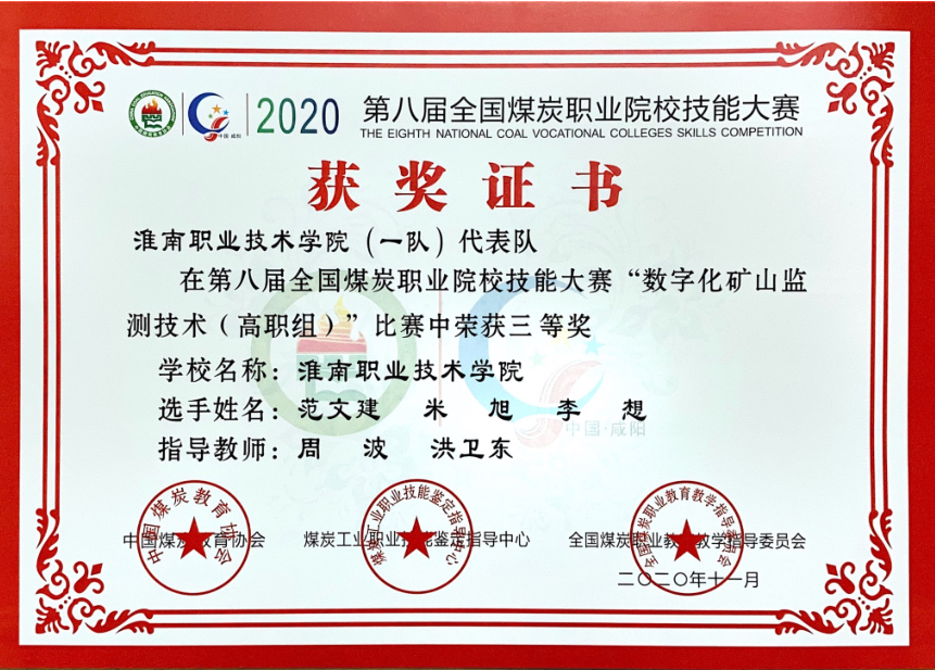 机电工程学院2支代表队参加“数字化矿山监测技术”赛项,经过拼搏,参赛一队获得团体三等奖。获奖学生:范文建、米旭、李想,指导老师:周波、洪卫东。