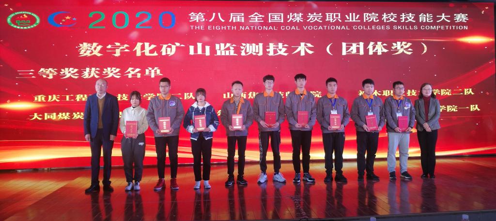 学校另外一支参赛队获“煤炭清洁利用技术”赛项团队二等奖。周波、孟凡军两位老师担任“煤矿瓦斯检查”赛项裁判。