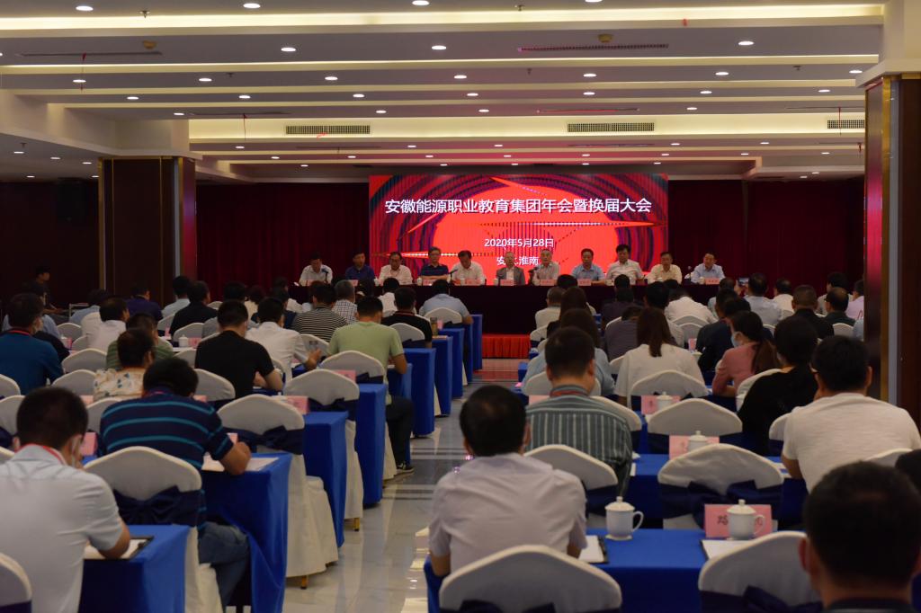 2020年5月28日,由安徽省能源职教集团主办,淮南职业技术学院承办的安徽职教集团年会暨换届选举大会在新锦江酒店隆重召开。中国煤炭工业协会副会长王虹桥,淮南市副市长邬平川,淮河能源控股集团党委副书记、工会主席杨林出席大会。会议第一阶段由安徽能源职教集团理事长、安徽能源学校党委书记、校长林葆春主持,第二阶段由新当选理事长、淮南职业技术学院党委书记、校长吴新社主持。