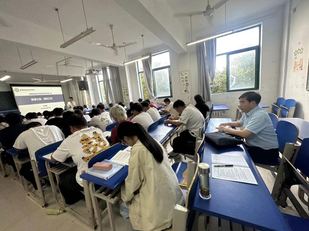 凝心聚力展英姿,筑梦淮职向未来。9月27日,2024级新生迎来大学第一课。为全面了解新学期教学运行情况,确保开学各项工作平稳有序开展,副校长朱云辉、凌总成、胡道成,校长助理马军,深入教学第一线,走进课堂,走近师生,同上开学第一课,并指导教学工作。
