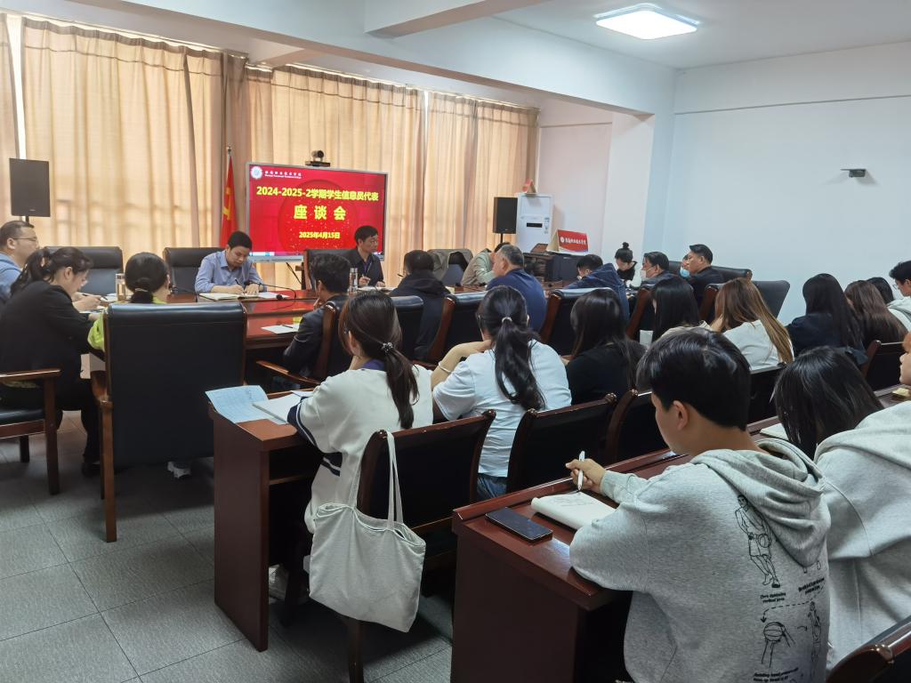 4月15、17日下午,学校分别在洞山校区行政楼405会议室和春申湖校区1801会议室召开2024-2025学年第二学期学生信息员代表座谈会,副校长凌总成到会听取代表发言并讲话。51名学生信息员代表,以及教务处、学生部、总务处、春申湖校区综合办、两校区相关服务单位负责人参加会议,座谈会由教务处处长周波主持。