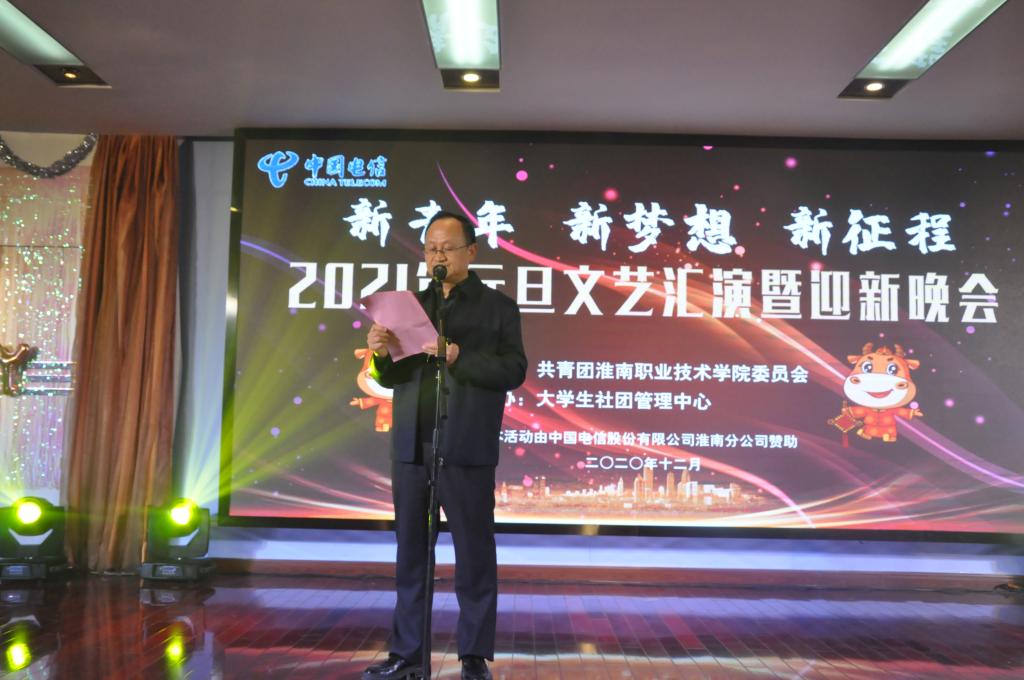 党委副书记、纪委书记、工会主席张友超在晚会上致辞。他首先对2020级新生的到来表示欢迎,并致以新年问候。同时,他期望全体学生谨记“修德立身,强技立业”的校训,志存高远、奋发向上,度过充实美好的大学生活。
