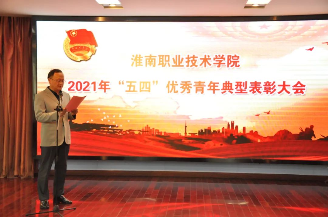 为庆祝中国共产党成立一百周年,弘扬和传承五四精神,以昂扬向上的精神面貌踏上新征程,不断增强团组织凝聚力、战斗力和创造力,选拔优秀典型,发挥榜样示范作用,4月29日下午,淮南职业技术学院2021年“五四”优秀青年典型表彰大会在学校综合楼三楼报告厅隆重召开。校党委副书记、纪委书记、工会主席张友超出席大会,相关部门负责人、各学院直属党支部书记、团总支书记及优秀青年和新团员代表参加大会。