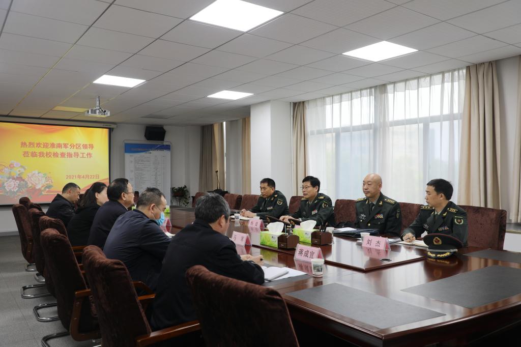 4月22日上午,淮南市军分区司令员杨进等一行来我校调研和指导征兵工作,校党委副书记、纪委书记、工会主席张友超出席座谈会。