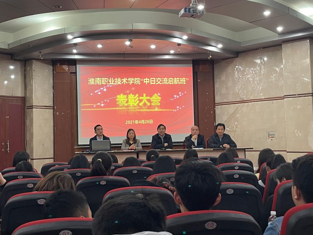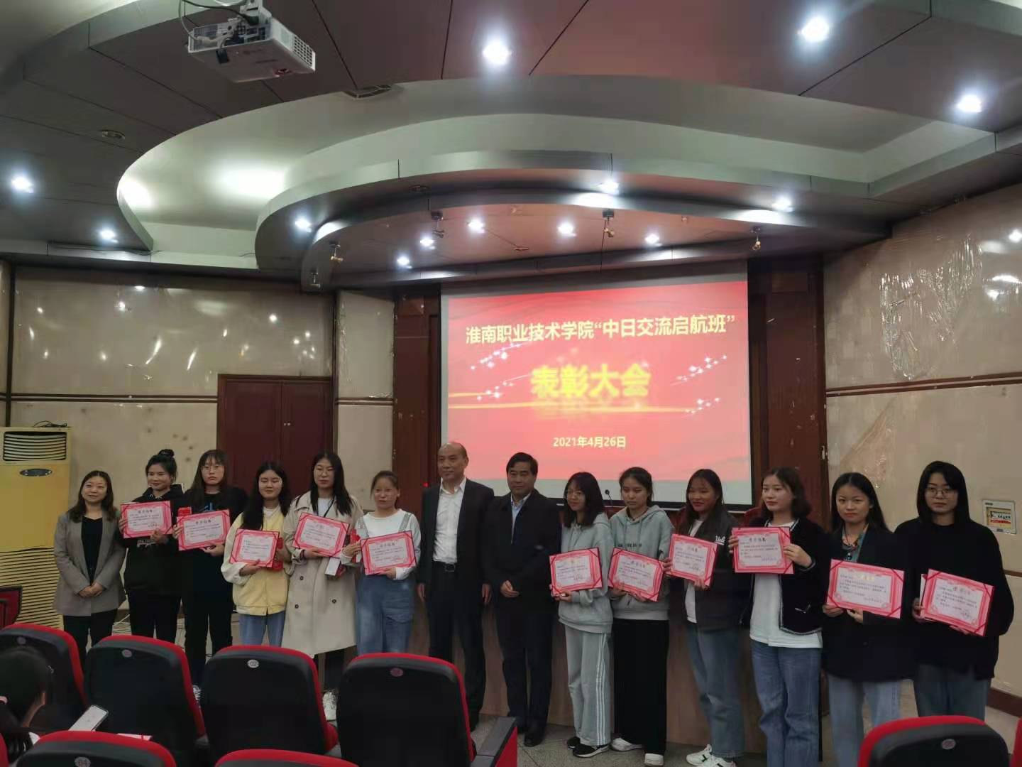 淮南职业技术学院“中日交流启航班”自2020年12月11日开班以来,在学校领导和芜湖外经集团的大力支持下,教学秩序井然、学习氛围良好。经过前期的努力,同学们在2021年度第一阶段日语测试中取得了较好成绩,其中11人荣获一等奖、23人荣获二等奖、28人荣获三等奖。学校领导和芜湖外经集团领导亲自为获奖同学颁奖。