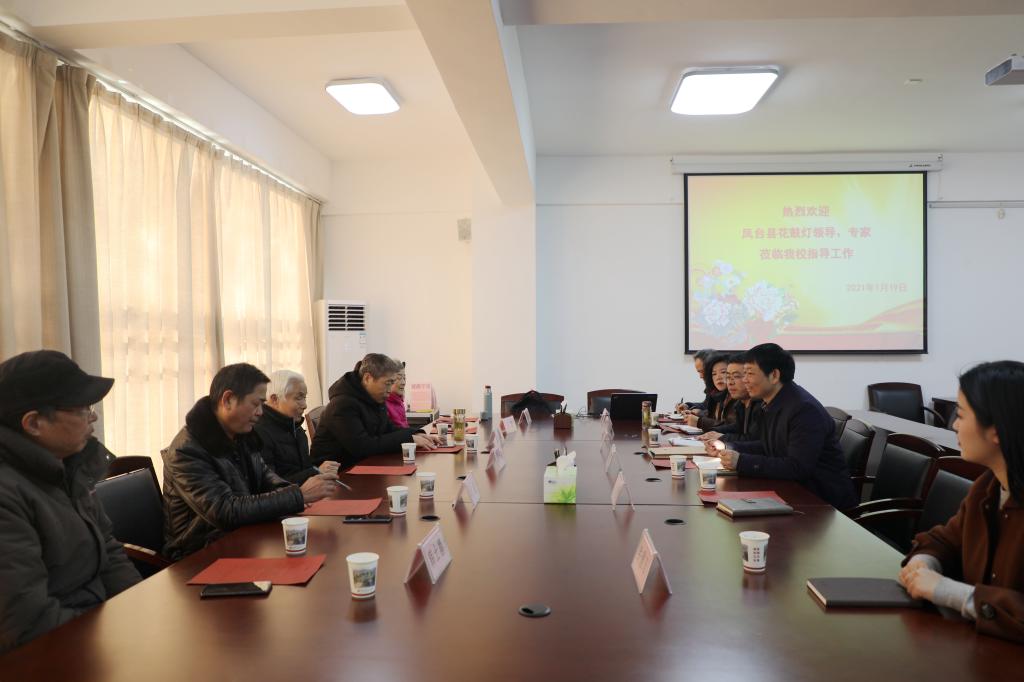 1月19日上午,花鼓灯(凤台)传承与创新资源库课题建设研讨会在学校行政办公楼二楼会议室举行,副校长凌总成出席了会议。花鼓灯国家级传承人邓红、张士根和凤台县文化馆、花鼓灯艺术团、推剧团领导人和课题组部分成员参加了会议。