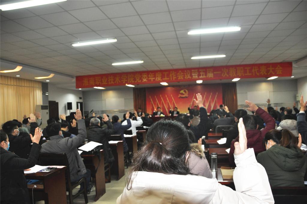 1月15日,学校在综合楼三楼会议室隆重召开淮南职业技术学院党委年度工作(党风廉政建设工作)会议暨五届一次教职工代表大会,认真总结“十三五”及2020年取得的成绩与启示,聚焦“十四五”高质量发展目标任务接续拼搏奋斗,坚定不移向省内一流地方技能型高水平大学阔步前进。
