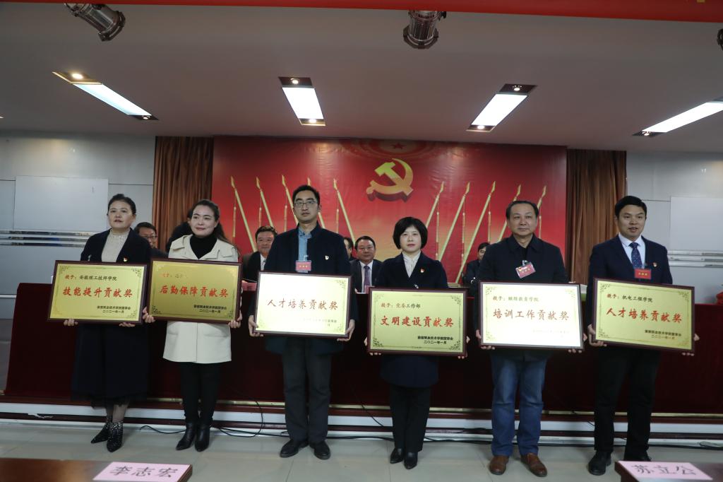 会议还对2020年度先进集体安徽理工技师学院、机电工程学院、医学院、继续教育学院、党委工作部、总务处和36名先进个人进行了表彰。