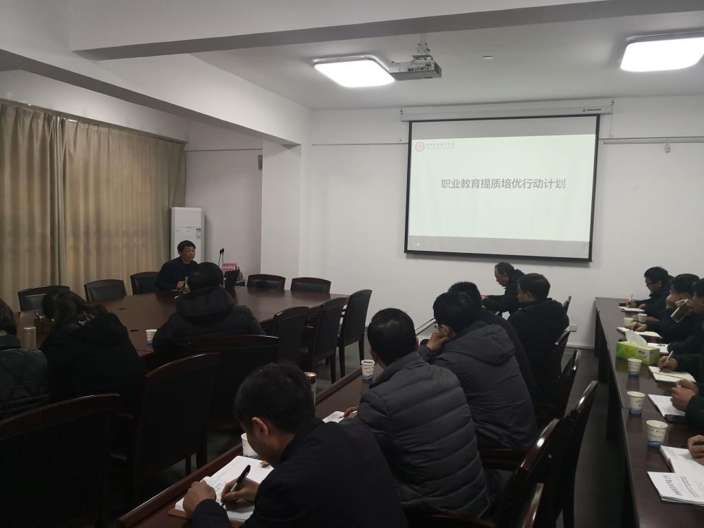 凌总成指出,教育部等九部门印发《职业教育提质培优行动计划(2020—2023年)》是落实《国家职业教育改革实施方案》又一重要举措,关键点在于提质、培优、增值和赋能。学校结合“十四五”事业发展规划、地方技能型高水平大学建设方案等要求,已制定具体承接方案,各单位根据工作实际,兼顾大局,相互配合,细化措施,稳步推进承接方案建设。