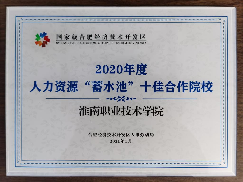2021年3月1日,合肥经济技术开发区2020年度人力资源“蓄水池”十佳合作院校挂牌仪式在学校行政楼307会议室举行。海尔智家人力资源部副部长李玉斌,副校长朱云辉、招生就业办、教务处、机电工程学院负责人及相关人员出席接牌仪式。