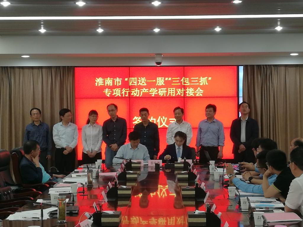 5月15日下午,淮南市人民政府联合省“四送一服”第七工作组举办淮南市“四送一服”“三包三抓”专项行动--产学研用对接会,会议由市政府副秘书长、办公室(外事办公室)主任叶士俊主持,省“四送一服”第七工作组郑烨到会指导,淮南职业技术学院、安徽理工大学、淮南师范学院的领导专家,市“四送一服”办公室、市科技局、市工商联领导,30余家科技型企业技术负责人参会。学校副校长朱云辉、副校长凌总成出席会议。