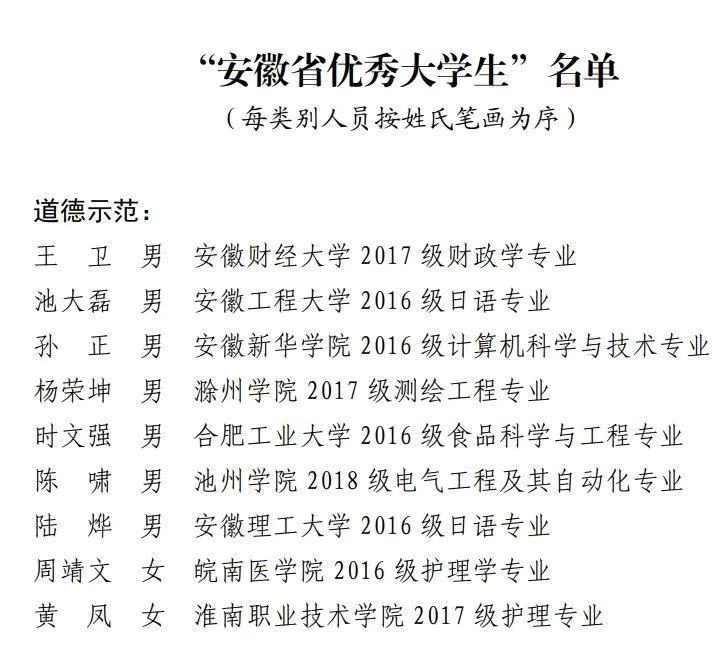 近日,我校医学院2017级护理专业学生黄凤再获殊荣,被评为2019年度“安徽省优秀大学生”(道德示范类)。