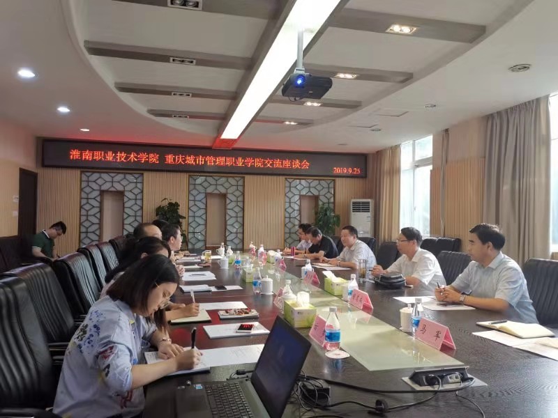 在重庆城市管理职业学院调研座谈会上,吴书记简要介绍了我校的历史沿革、发展历程、教育教学与培训工作取得成就、人才培养及技能大赛状况。重庆城市管理职业学院党委书记任波、副校长罗小秋介绍了重庆城市管理职业学院发展状况及中外合作交流工作情况。双方还围绕中外合作办学的资质申报、人才培养方案制度、留学生管理、教师国外学习进修等进行了深入交流。