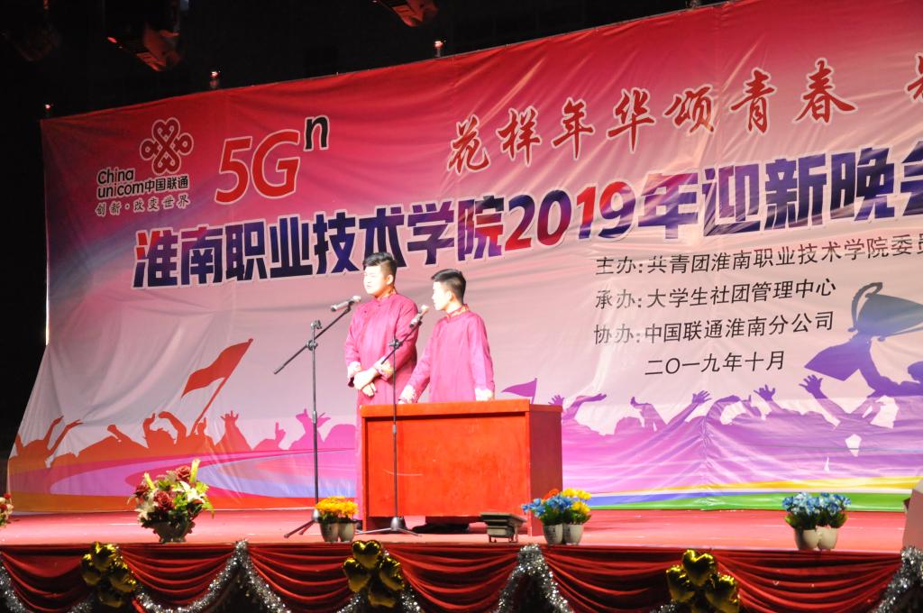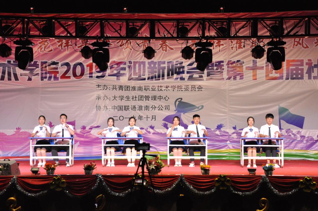 10月18日晚,我校文化广场群英荟萃,鼓乐齐鸣,由团委主办、大学生社团管理中心承办的2019年迎新晚会暨第十四届社团文化节开幕式在这里隆重举行,校党委副书记、纪委书记、工会主席张友超,中国联合网络通信有限公司淮南市分公司崔健经理、王武海经理、校园部总监吴茜、校园部主任刘志伟出席晚会,相关职能单位负责人、各直属党支部书记、团总支书记和来自各院系部以及淮南卫校的900名新生代表在现场共同观看了晚会,近2000人通过网络直播观看了晚会。