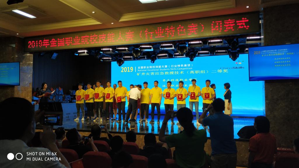 来自全国12个省、市、自治区的29所院校的116名选手参加现场角逐。各参赛队在赛场上比拼技能、展示风采、增进友谊,彰显了新时代职业技术人才的精神风貌。经过激烈的角逐,我校丁宇航、贾永志、杨金伟、王勇四名学子勇夺2019年全国职业院校技能大赛(行业特色赛项)矿井灾害应急救援技术(高职组)赛项团体二等奖。