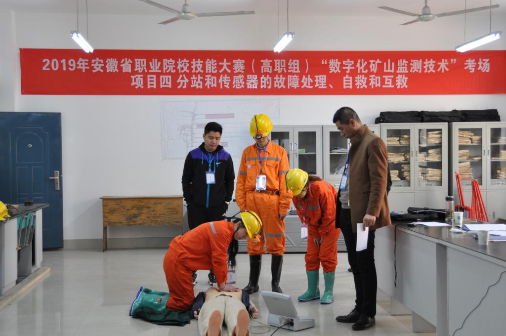 3月23日,由安徽省教育厅、安徽省人力资源和社会保障厅、安徽省经济和信息化厅主办、淮南职业技术学院承办、国家矿山应急救援淮南队协办的2019安徽省职业院校技能大赛(高职组)“矿井灾害应急救援技术”和“数字化矿山监测技术”赛项分别在国家矿山应急救援淮南队基地和淮南职业技术学院中区成功举办。共有来自安徽工业经济职业技术学院、合肥职业技术学院、淮南职业技术学院的17支代表队的60名选手参加竞技。