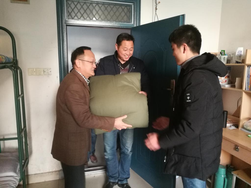 走访中,张书记亲自为贫困学子送上学校准备的御寒棉被,并针对生活学习问题与大家进行了亲切交流。张书记表示冬季已经来临,同学们一定做好御寒保暖工作,生活中遇到困难与问题要及时向老师反映,积极与老师沟通,以便及时解决,同时也要注意宿舍安全,提高防范意识,安全用电。最后他鼓励同学们要自立自强,努力学习,提高技能,早日摆脱贫困。同学们纷纷表达了真挚的感谢,并表示一定会努力学习,积极向上,用实际行动回报学校的关爱。